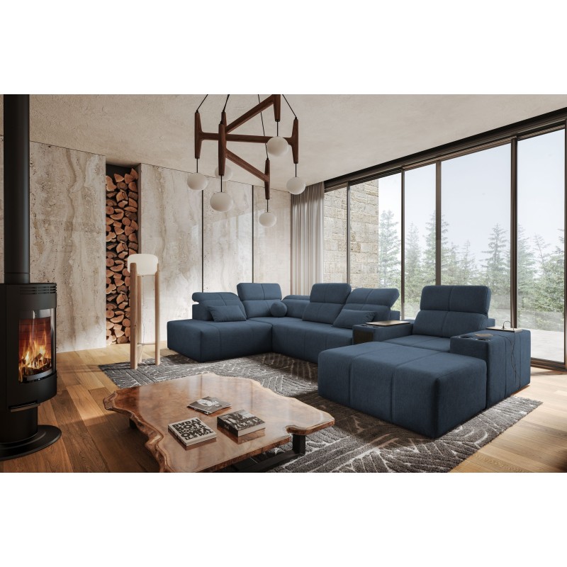 Оббитий з усіх боків, що дозволяє вільно розташувати його в просторі вітальні, регульовані підголівники додають йому особливої зручності. Крім того, цей кутовий диван має вбудований порт USB, що є неоціненним під час розслаблюючих моментів зі смартфоном чи планшетом.