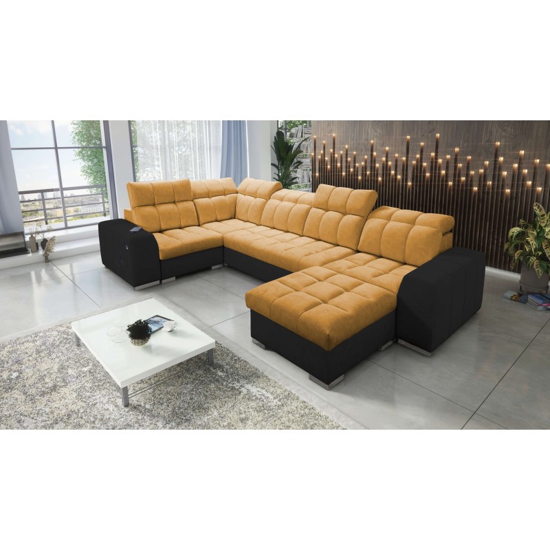 Кутовий диван у формі U Prisma IV з функцією сну, USB-портом та контейнером для білизни Velvet | Pet friendly, Terra 48 + Екошкіра чорна