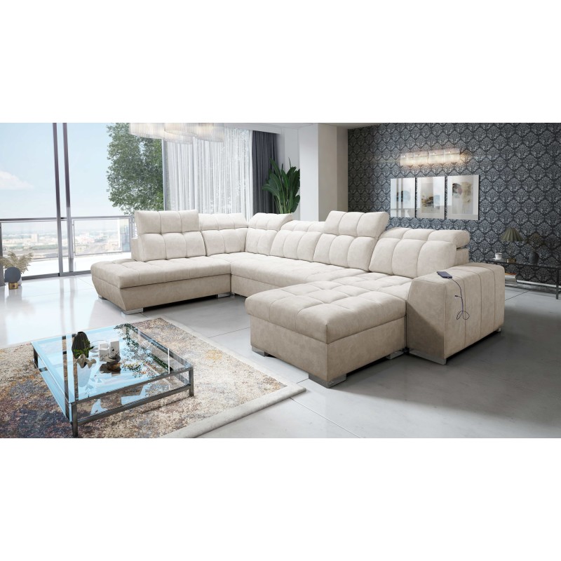 Кутовий диван у формі U Prisma VI з функцією сну, USB-портом та контейнером для білизни, тканина Terra 13