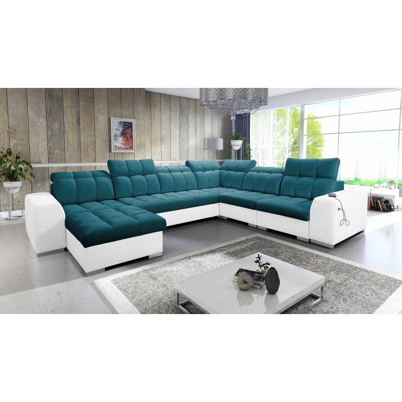 Кутовий диван у формі U Prisma VIII з функцією сну, портом USB та ящиком для білизни тканина Terra 75 + Екошкіра