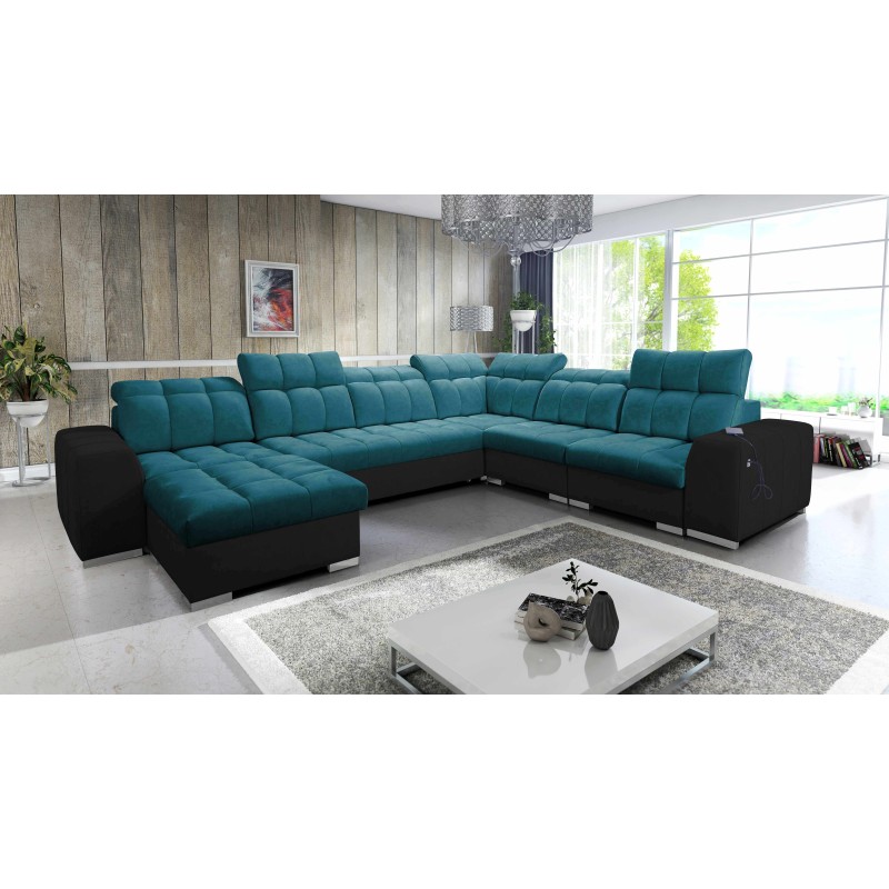 Кутовий диван у формі U Prisma VIII з функцією сну, USB-портом та ящиком для білизни тканина Terra 75 + Екошкіра чорна