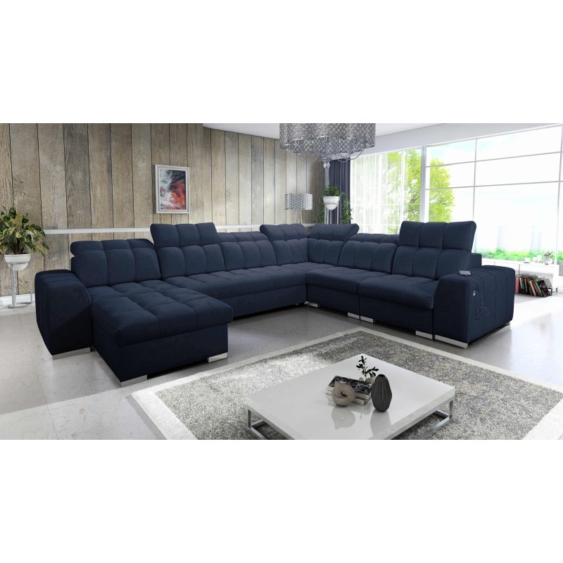 Кутовий диван у формі U Prisma VIII з функцією сну, портом USB та ящиком для білизни, тканина Terra 79