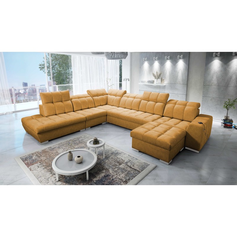 Кутовий диван у формі U Prisma X з функцією сну, USB-портом та ящиком для постільної білизни тканина Terra 48