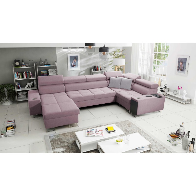 Кутовий диван у формі U Orbix IV Maxi з функцією сну, регульовані підголівники, USB-порт та ящик для постільної білизни, тканина