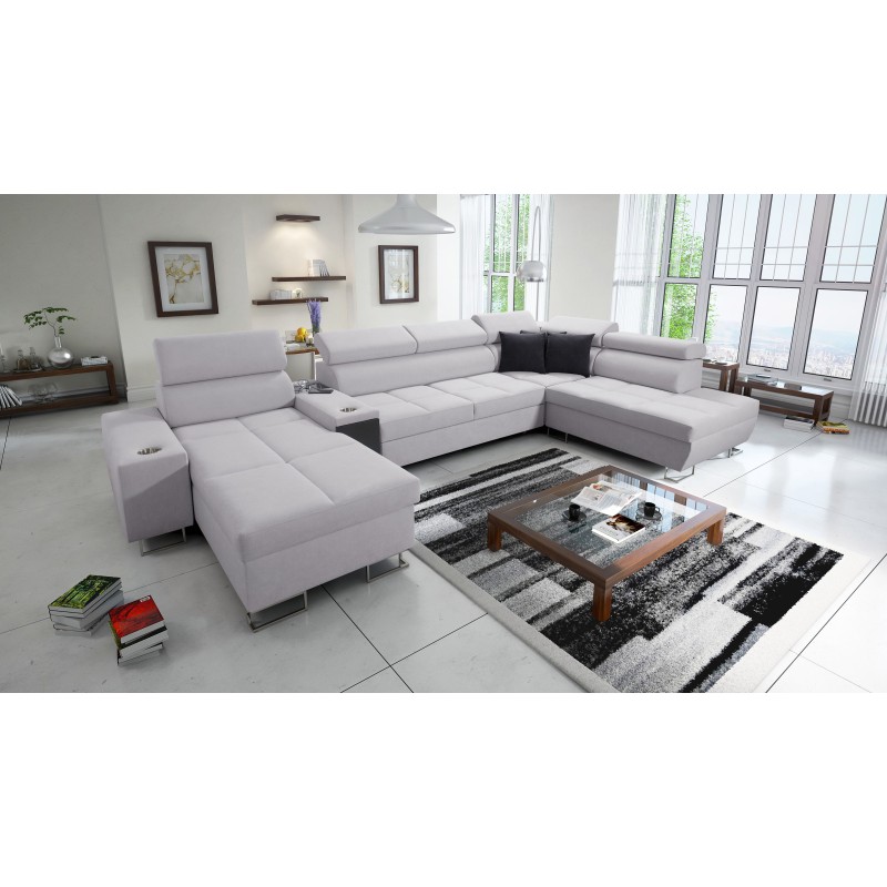 Диван кутовий в формі U Orbix V з функцією сну, регульовані підголівники, USB порт та ящик для білизни, тканина Sawana 84.