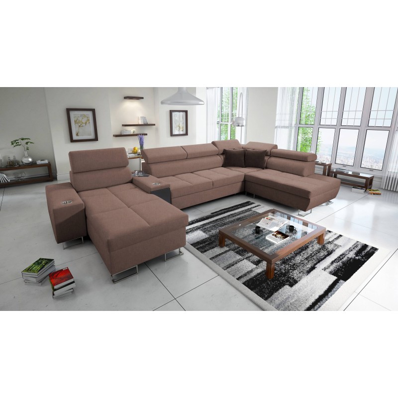 Кутовий диван у формі U Orbix V з функцією сну, регульованими підголівниками, USB-портом та ящиком для постільної білизни, ткани