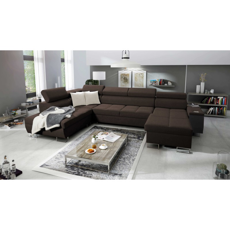Кутовий диван у формі U Orbix VI з функцією сну, регульованими підголівниками, USB портом та ящиком для постільної білизни, ткан