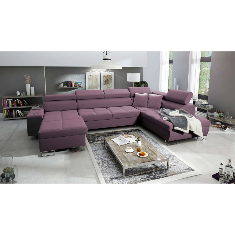 Кутовий диван у формі U Orbix VI з функцією сну, регульованими підголівниками, портом USB та ящиком для постільної білизни ткани