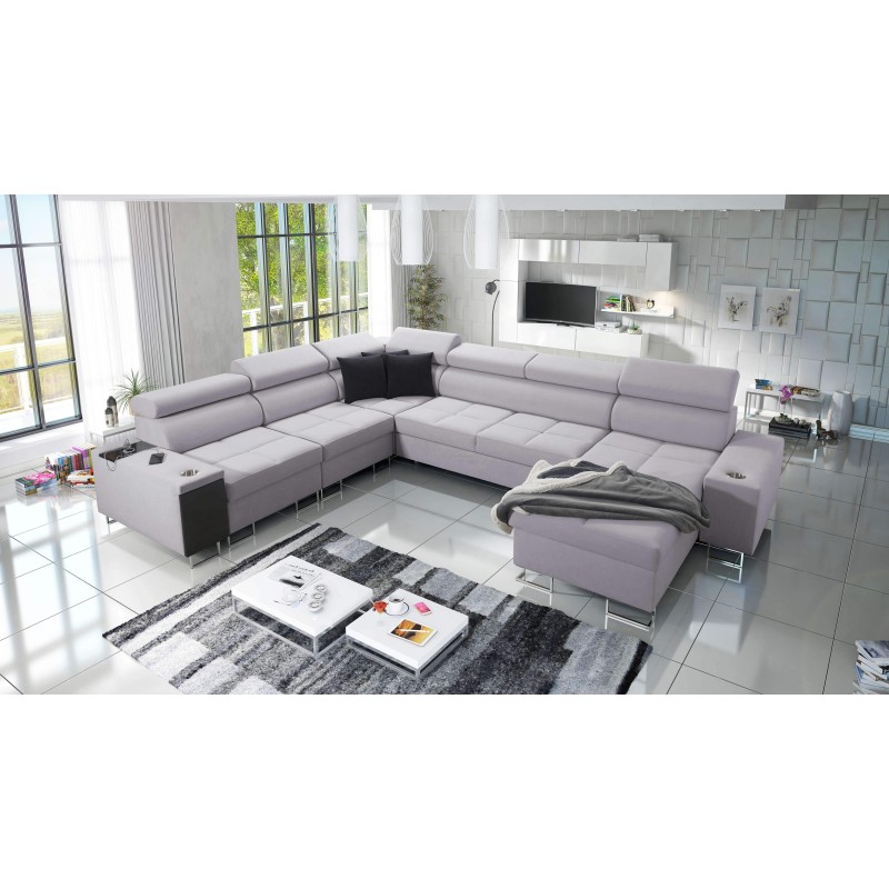 Кутовий диван у формі U Orbix VIII з функцією сну, регульованими підголівниками, портом USB та ящиком для постільної білизни, тк