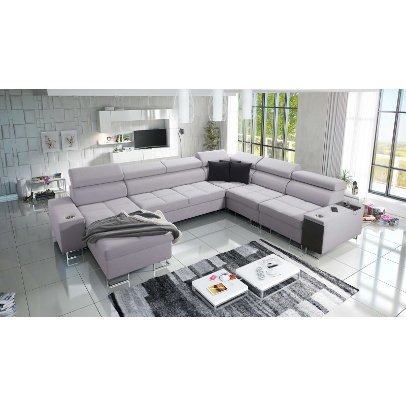 Кутовий диван у формі U Orbix VIII з функцією сну, регульованими підголівниками, портом USB та ящиком для постільної білизни, тк