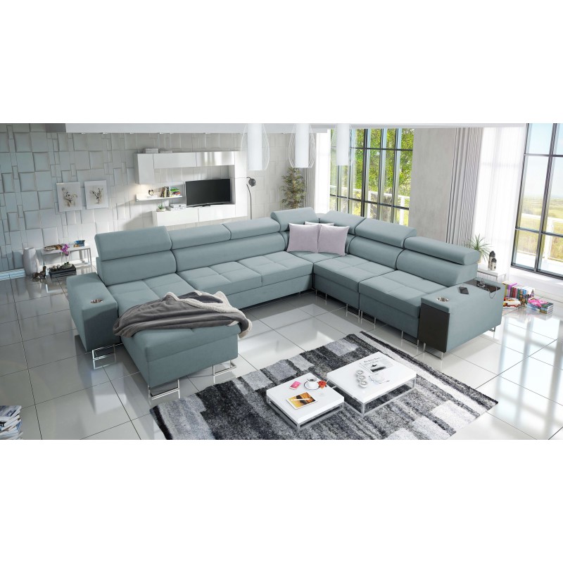 Кутовий диван у формі U Orbix VIII з функцією сну, регульованими підголівниками, USB-портом та контейнером для постелі, тканина