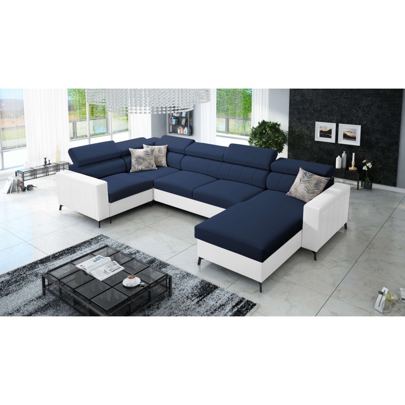 Кутовий диван у формі U Arco V Maxi з функцією сну, регульовані підголівники, тканина Mono 241 + екошкіра