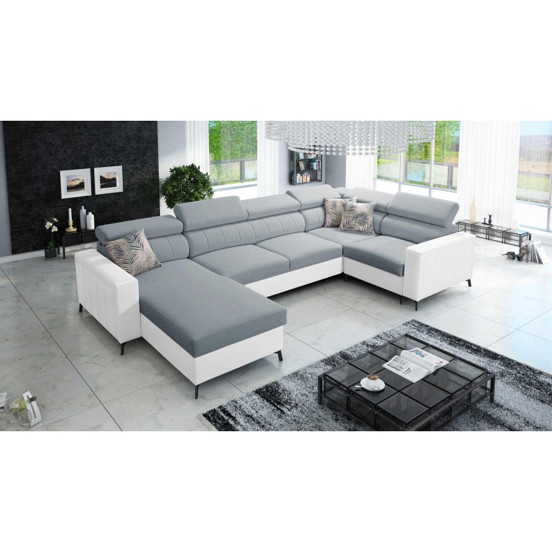 Диван у формі U Arco V Maxi з функцією сну, регульовані підголівники, тканина Sawana 72 + Екошкіра