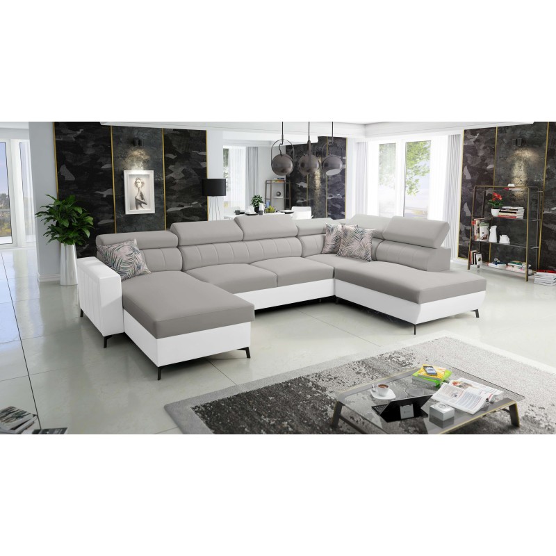 Диван кутовий у формі U Arco VI з функцією сну, регульовані підголівники тканина Mono 244 + Екошкіра