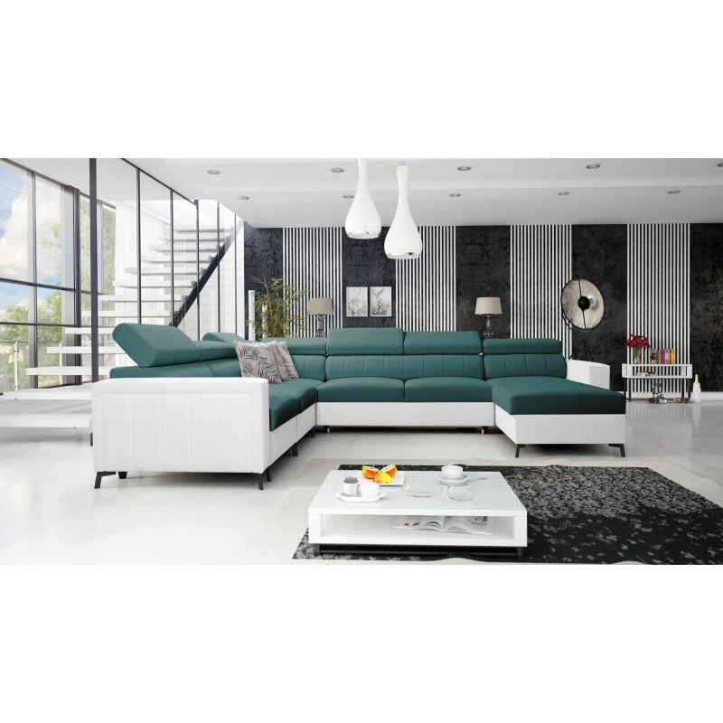 Кутовий диван у формі U Arco VII з функцією сну, регульовані підголівники тканина Mono 238 + Екошкіра