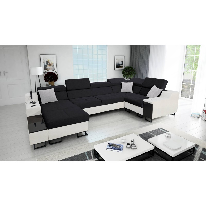 Кутовий диван у формі U Avanti IV Maxi з функцією сну та лампою з USB-портом тканина Sawana 14 + Екошкіра