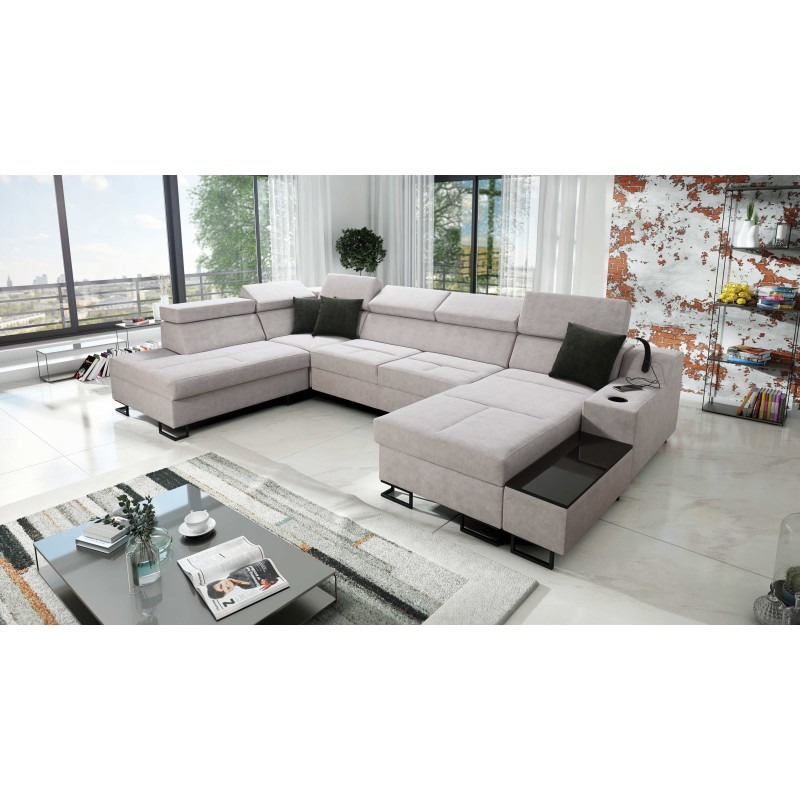 Кутовий диван у формі U Avanti VI з функцією спання та лампою з USB портом тканина Whisper 16