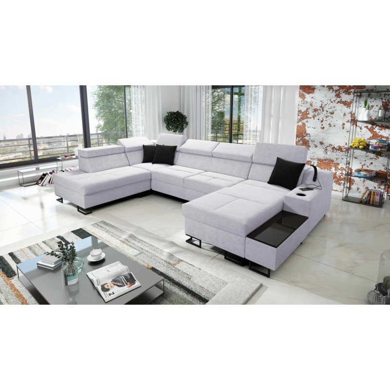 Кутовий диван у формі U Avanti VI з функцією сну та лампою з USB портом тканина Sawana 84
