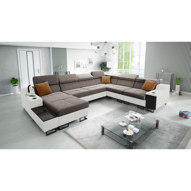 Кутовий диван у формі U Avanti VIII з функцією сну та лампою з USB-портом, тканина Whisper 5 + Екошкіра