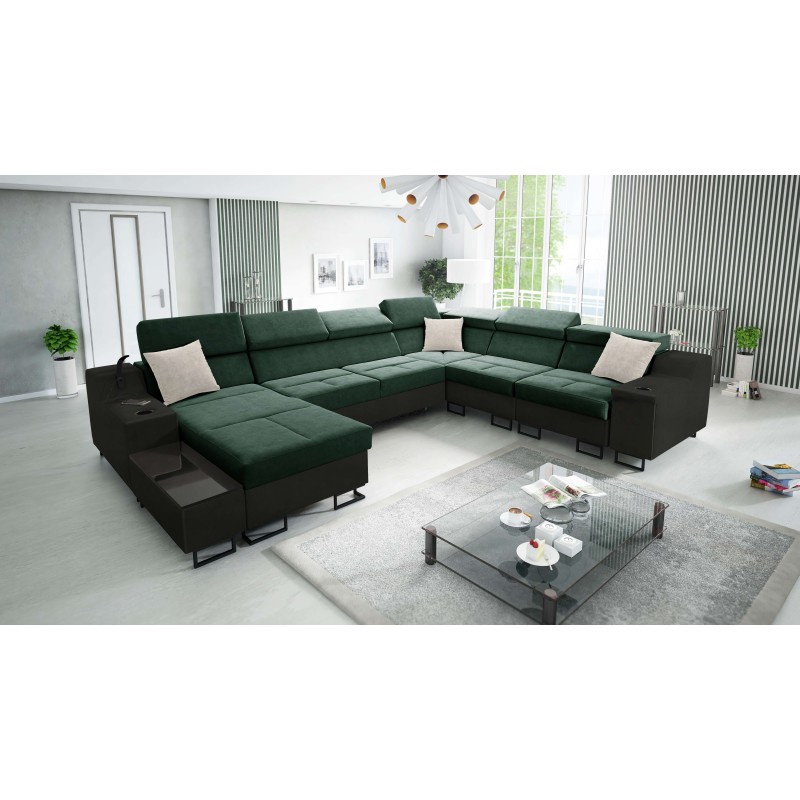 Запрошуємо ознайомитися з нашою новітньою пропозицією - розширеним кутовим диваном у формі U, Avanti VIII. Цей ексклюзивний меблевий виріб вражає не лише своїм сучасним, стильним виглядом, але й практичними функціями. Виконаний з найвищої якості велюру, Whisper 11 + чорна екошкіра, він чудово підходить як для щоденного використання, так і для зустрічей з родиною чи друзями.