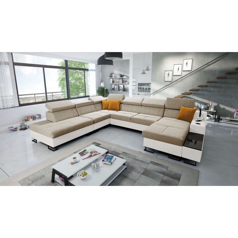 Кутовий диван у формі U Avanti X з функцією сну та лампою USB | Велюр, Whisper 3 + Екошкіра